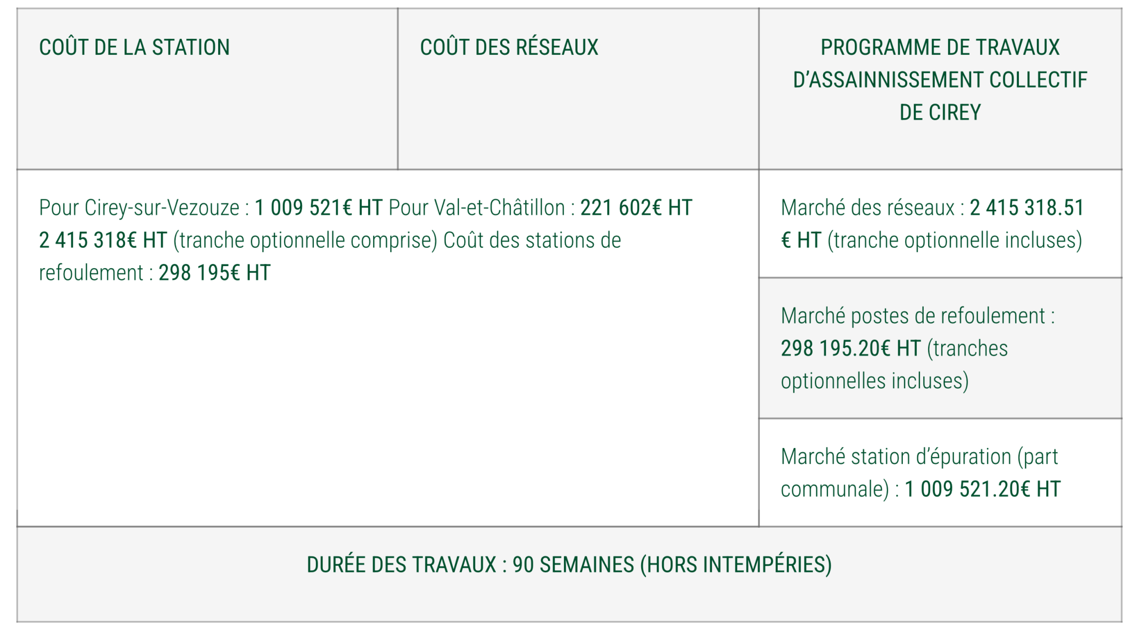 La station d’épuration « S.T.E.P » commune à Cirey-sur-Vezouze et à Val-et-Châtillon a été créée au lieu-dit « Les Chenevières ». Elle est équipée de deux filtres plantés de roseaux et a été réalisée par les entreprises Jean VOISIN et SCRE. Une convention a été signée entre les deux communes pour l’exploitation de cette station. Les travaux de réseau ont été réalisés par l’entreprise INEO et, pour les différents postes de refoulement répartis dans la commune, par l’entreprise SOGEA. Pour rappel, les études ont été subventionnées à hauteur de 80% par l’Agence de l’Eau et les travaux à hauteur d’environ 67%. Une enquête de branchement a été réalisée sur l’ensemble des habitations de la commune afin d’établir les coûts de raccordement en fonction des solutions techniques individuelles retenues.
